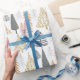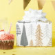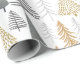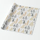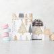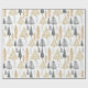 O papel de embrulho de férias do CLARA contém ouro e tons azuis em árvores de Natal modernas