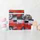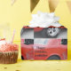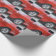 Um vintage, mustang vermelho é caracterizado neste papel de embrulho do aniversário para um padrinho.