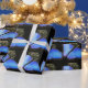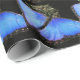 Papel de embrulho da Borboleta Azul Morpho com fundo preto. Este azul iridescente é natural para esta linda borboleta que é muito difícil de capturar, pois geralmente mantém suas asas fechadas quando pousa. Papel muito bonito para qualquer propósito.