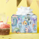 Papel de embrulho de sereia azul, perfeito para chás de fraldas e aniversários infantis.