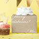 Papel comum castanho com papel de enrolamento de padrões brancos. Eu tenho várias designs deste simples e bonito presente na minha loja. Esta é a palavra branca "Feliz Natal". Diga simplesmente.