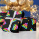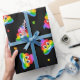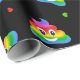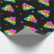 Corante bonito e feliz do arco-íris ama poo emoji com corações arco-íris em papel de embrulho de fundo preto / papel de embrulho de presente para casais lésbicas e homossexuais gay.
