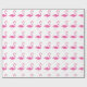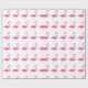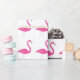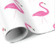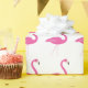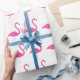 Bonito flamingos cor-de-rosa num fundo branco decoram este papel de embrulho de uma festa tropical, fazer-o perfeito para um aniversário, chá ou qualquer ocasião especial de Verão.