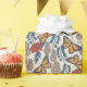 Um pedaço de cogumelo e um padrão de borboleta monarca embrulhando papel.