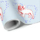 O Bulldog Francês Puppy em vermelho e branco com estrelas azuis sobre um fundo azul claro.