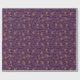 Papel embrulhando com um moderno design minimalista para o Halloween, um padrão de silhuetas de crânios, fantasmas, teias de sabugo, uma silhueta de gato, abóboras.