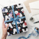 Cães Bichon Frise Patrióticos vestidos de roupas brancas e azuis com estrelas e listras.