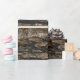 Um sofisticado design de papel de embalagem que apresenta uma textura realista de grãos de madeira escura em tons de marrom, preto e cinza. Perfeito para presentes temáticos rústicos, amantes da natureza, ou qualquer pessoa que busque uma apresentação elegante e saborosa. Ideal para aniversários, feriados, casamentos ou brasão de presente masculina.