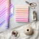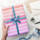 Combinação de tons de cor complementares roxa, rosa, laranja e listras amarelas. Belo papel de embrulho de presente arco-íris para todas as ocasiões.