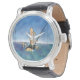 Pegue este novo relógio divertido com uma ilustração cartoon de um pescador em uma situação surreal e estranha. Linda água azul e fundo do céu ao redor desta design para um design bonito e divertido. Este tema divertido de pesca de desenho animado é perfeito para os pescadores de anjos.