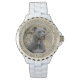 Este belo relógio feminino mostra um Blue Nose Pitbull chamado Sarge. Sargento está sentado em uma encosta ouro olhando para sua esquerda em profundo pensamento. Sargento é um cão maravilhoso que vive para ser raptado. Suas coisas favoritas são assistir o peru selvagem e veado percorrendo nossa propriedade e brincar com skates. Um relógio perfeito para cada amante de Pitbull.