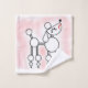 Uma toalha de lavagem com uma ilustração de poodle esnooty. Um poodle estilizado com pom e um pout sobre um fundo rosa poderoso.