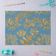 De Seda Algas marinhas Douradas em Papel Azul-Azul-Aqua