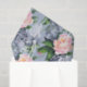 O Chapéu Louco, o Gato Cheshire, a menina Alice e o Coelho Branco do livro clássico Alice no País das Maravilhas aparecem em branco escondendo-se entre as folhas e as flores dos belos rosas azuis azuis, rosa e azul-claro, neste adorável papel de tecidos literários brancos para embalagem de presente ou desenho e desvinculação..