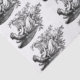 desenho da safra de um anjo tocando a harpa cercada por folhas.