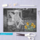 Papel tecidular com a imagem de uma estátua de um Anjo lendo um livro com girassóis ao seu lado.