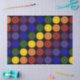 Linhas de bolinhas coloridas do arco-íris cobrir fundo preto. As linhas offset formam diagonais de cada cor: violeta, índigo, azul, verde, amarelo, laranja e vermelho. Imagem criada digitalmente. Copyright © Claire E. Skinner. Todos os direitos reservados.