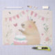 Esta ilustração peculiar mostra uma alegre capybara comemorando um aniversário em estilo. A capybara, adorada com uma festa brincalhona que topei com velas, segura alegremente uma fatia de bolo. A cena é completada com um belo bolo de aniversário em duas camadas, decorado lindamente, com tons pastéis de rosa, azul e branco, revestidos de velas vibrantes. O pano de fundo festivo inclui borboletas cor-de-rosa e azuis, padrões florais, e uma série de faixas coloridas de pennant, acrescentando ao ambiente alegre. Perfeito para comemorações de aniversário, convites de festas, ou mercadoria temida, este charmoso design expele diversão e festividade.