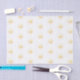 Este papel tecidular irradia alegria com o seu padrão repetido de sóis sorridentes contra um fundo suave e esbranquiçado. É perfeito para adicionar um toque ensolarado a embrulho de presentes, decoração de chás de fraldas e decoração de aniversário de crianças.