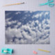 De Seda Nuvens Puffy Sobre Papel Tecido Azul