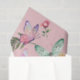Papel cor-de-rosa para adicionar esse toque especial. Embalagem de design de borboleta