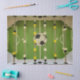 Papel de tecido dotado com imagem de uma mesa de foosball em cores verde, amarelo, branco e preto.
