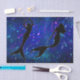 Papel de lenço de sereia azul Shimmery com silhuetas de Sereias nadando.