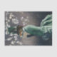 Este lenço é ilustrado com uma víxen vitoriana em um vestido quebrado antes de magnólias.