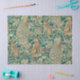 Baseado no wallpaper "Forest" da era vitoriana de William Morris com coelhos, lobos e pavões em uma floresta verde.