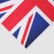 Papel tecidular com imagem da bandeira da bandeira da União em cores vermelha, branca e azul.