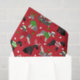 Calcinhas de Natal com sal e pimenta e casacos pretas e prateadas vestem chapéus de Santa, galhadas e suéteres argilosos em fundo vermelho com ornamentos dispersos.