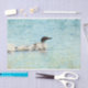 Foto do leão comum no lago Chase, em Maine. Design de papel de tecido de aquarela por Don