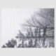 Mergulhe numa terra maravilhosa de inverno com a fotografia vertical a preto e branco, Árvores cobertas de neve. As árvores formam uma diagonal forte com a árvore mais alta começando no canto superior esquerdo da imagem e a árvore mais curta no terço inferior da borda direita. As duas árvores à esquerda são verdes e as restantes são folhas caducas, todas cobertas de neve. O céu acima deles é branco. Fotografia digital, preta e branca. Copyright © Claire E. Skinner. Todos os direitos reservados.