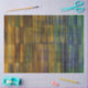 O papel-tecidos pode ser usado para embrulhar um presente ou embelezar itens artesanais por meio de desvinculação ou outras abordagens. Este design é de aquarela em tons de azul, verde e ouro e foi inspirado pelo sudoeste.