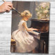 De Seda Pequena Garota Jogando Piano 2 Papel Decoupage
