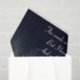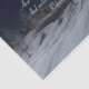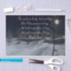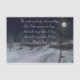 Papel tecidular dotado com imagem de uma floresta nevada numa noite iluminada pela lua e um verso do poema de Robert Frost, " Parando por Woods numa Noite Neve".