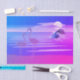 Papel de tecido dotado com imagem de dois flamingos e uma sereia mergulhando debaixo do mar com uma lua de cheio ao fundo.