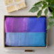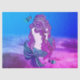 Papel de tecido dotado com imagem de uma sereia sentada na areia sob o mar em cores azul e roxo.