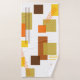 Este conjunto de toalhas tem uma design moderna do século médio de retângulos e linhas em cores dos anos 70.
