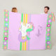 Cobertor de Fleece Unicórnio e Arco-íris em Cores Pastel para uma menina. Basta adicionar o nome da sua filha na área de personalização.