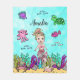 Adicione o nome da sua filha a esta mão bonita desenhada em negrito e de cor clara Sob a sereia náutica do Mar e o cobertor de velhas amigas da criatura do mar. Este é um presente perfeito para qualquer garotinha que ama as sereias! Pequena Sereia com cabelo loiro e cauda rosa.