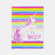 Crianças personalizaram uma cor-d-água unicórnica, uma arte caprichada em um fundo gráfico de faixa do arco-íris. Leitura original de um unicórnio mitológico, roxo e cor-de-rosa, e design, por Sarah Trett, para www.mylittleeden.com no zazzle.