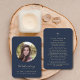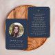 Este simples cartão de oração memorial pode ser dado como guardião numa Celebração da Vida ou num serviço funerário ou enviado como homenagem especial aos que não puderam estar presentes. Personalize este cartão com uma foto favorita de sua falecida partida e sua escolha de oração ou poema na parte de trás do cartão, em uma tipografia elegante com script dourado, em um histórico clássico azul-marinho. Fácil de personalizar.