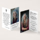 Um cartão fotomemorial dobrado com 2 fotos mostra "Celebrando a vida de" com a foto, o nome e as datas de morte por nascimento de seu ente querido na frente e uma cruz com um poema nas costas (pode ser mudado para suas próprias palavras.) Uma segunda foto na dentro e uma mini elogia, bela por um marcador tesouro guardado para serviços funerários, acordares e celebração de memoriais.