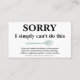 Com este cartão, às vezes é mais fácil dizer "não" do que dizer em voz alta. São necessárias explicações que não se pode dar a si próprio, apenas que se sente sobrecarregado, o que muitas vezes não é visto ou reconhecido por pessoas neurotípicas. Dá-lhes o cartão, pode ajudar! E vocês, que também sabem disso mas não pensam que caem no espectro da neurodivergência - vocês podem usá-lo também. Eu não sabia que tinha um DDA severo a vida toda, agora tenho mais de 60 anos e só recentemente - finalmente! - diagnosticado. Uma carta como esta, sabendo o que tenho, teria me ajudado imensamente. Talvez seja parecido para você. E vocês pessoas neurotípicas aqui - todos, absolutamente todos vocês, conhecem pessoas como nós. Você sabe sobre eles. Ajude-os com essas cartas. Você não acreditaria o quanto está ajudando alguém. Não apenas através do cartão, mas também mostrando que você vê essa pessoa e se preocupa com ela. E tudo isso também se aplica a pessoas com doenças crônicas. Obrigado por ler até agora.