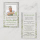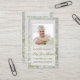 Modelo do cartão de oração de funeral com tema flores brancas, fácil de usar, com foto e texto editáveis.
