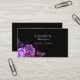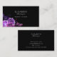 Flores roxas em cartões de visitas pretas.