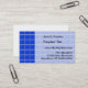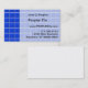 Multiplicam-se quadrados azuis tridimensionais em toda a carta, parecendo-se com azulejos de cerâmica ou vidro. Três linhas verticais à esquerda são azuis-escuras, o restante dos quadrados é um pano de fundo fraco para as informações comerciais pertinentes de Nome, Negócios, números de contato (todos para serem personalizados).