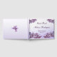 Lilases adoráveis são o tema deste elegante livro de hóspedes floral Quinceañera. Ele apresenta uma borda de pulverizações liláticas cor-de-rosa e mauve em um plano de fundo pálido e gradiente. Todo o texto pode ser personalizado para sua ocasião especial.