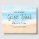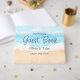 Bonito ondas de oceano azul e lacrimogêneo em uma praia arenosa Costeira, tema Personalizado Livro de Convidados de Casamento.